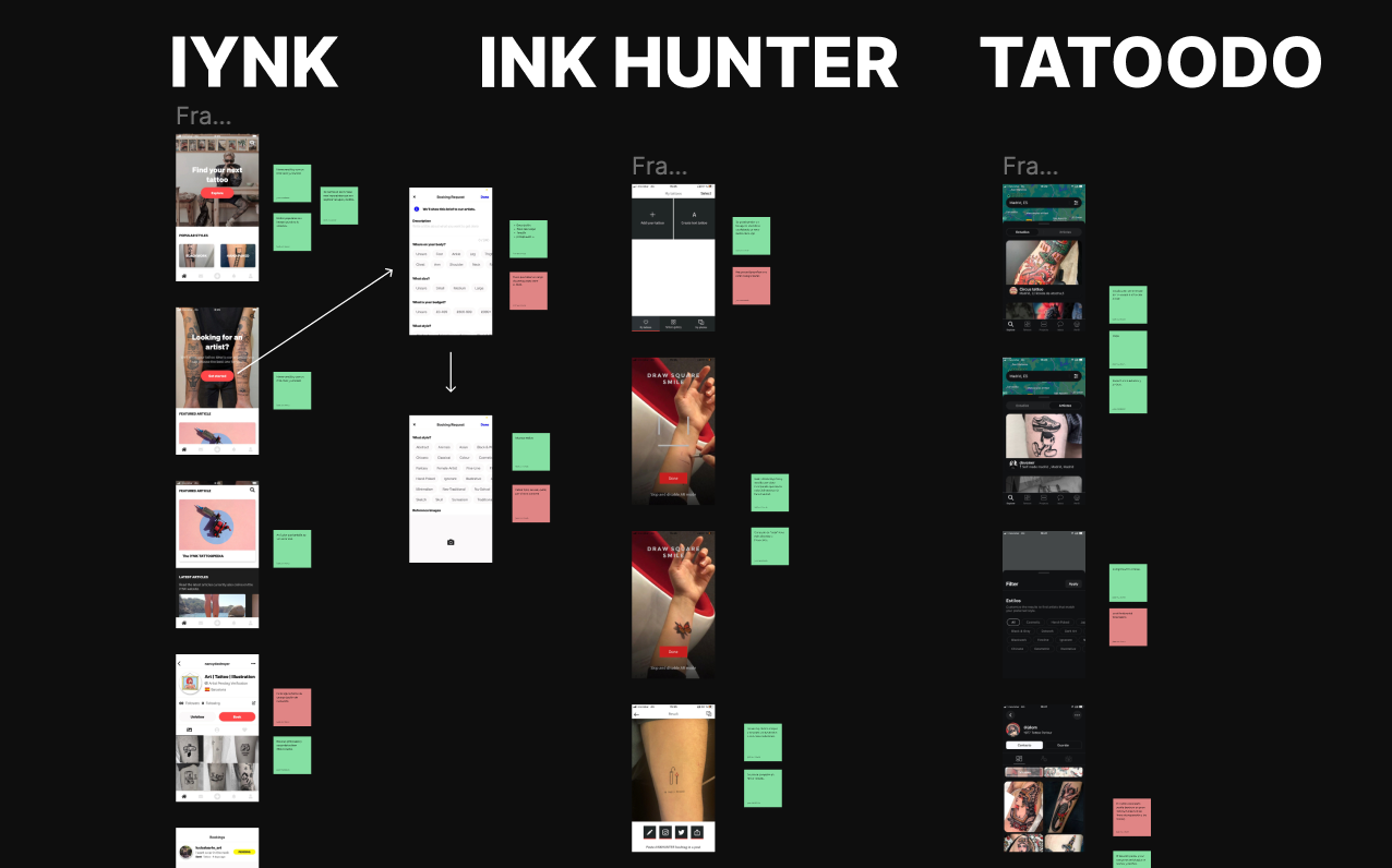 We conducted closed surveys with both tattoo artists and individuals interested in the industry. This allowed us to uncover some of the challenges and needs of the users. We inquired about their preferences, sources of inspiration, payment methods, techniques, age, among others.